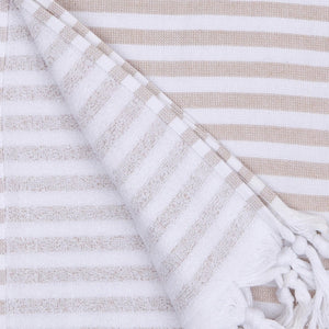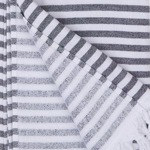 100% Premium cotton with terry backing. This towel is perfect for those who want terrycloth that takes up less space. The towels are made of 100% natural Turkish cotton, which provides a high comfort of softness. They are highly absorbent and dry quickly. As they weigh less than a regular terry cloth, they are well suited to the beach, the boat, the campsite. With a design inspired by Scandinavian minimalism, this towel is a good choice for those looking for a better textile.