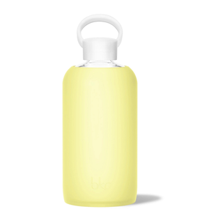 Sätt färg på din vardag med Meyer – en stilren 1 liters återanvändbar glasflaska från bkr, klädd i ett citrongult skyddshölje av silikon. Perfekt för dig som vill dricka mer under dagen – på yogamattan, kontoret eller hemma.