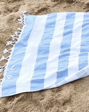 Lagunen badhandduk är en tidlös och funktionell badlakan med inspiration från vårt skandinaviska väder. Den passar lika bra hemma som på en resa till solen och är en mycket uppskattad present.