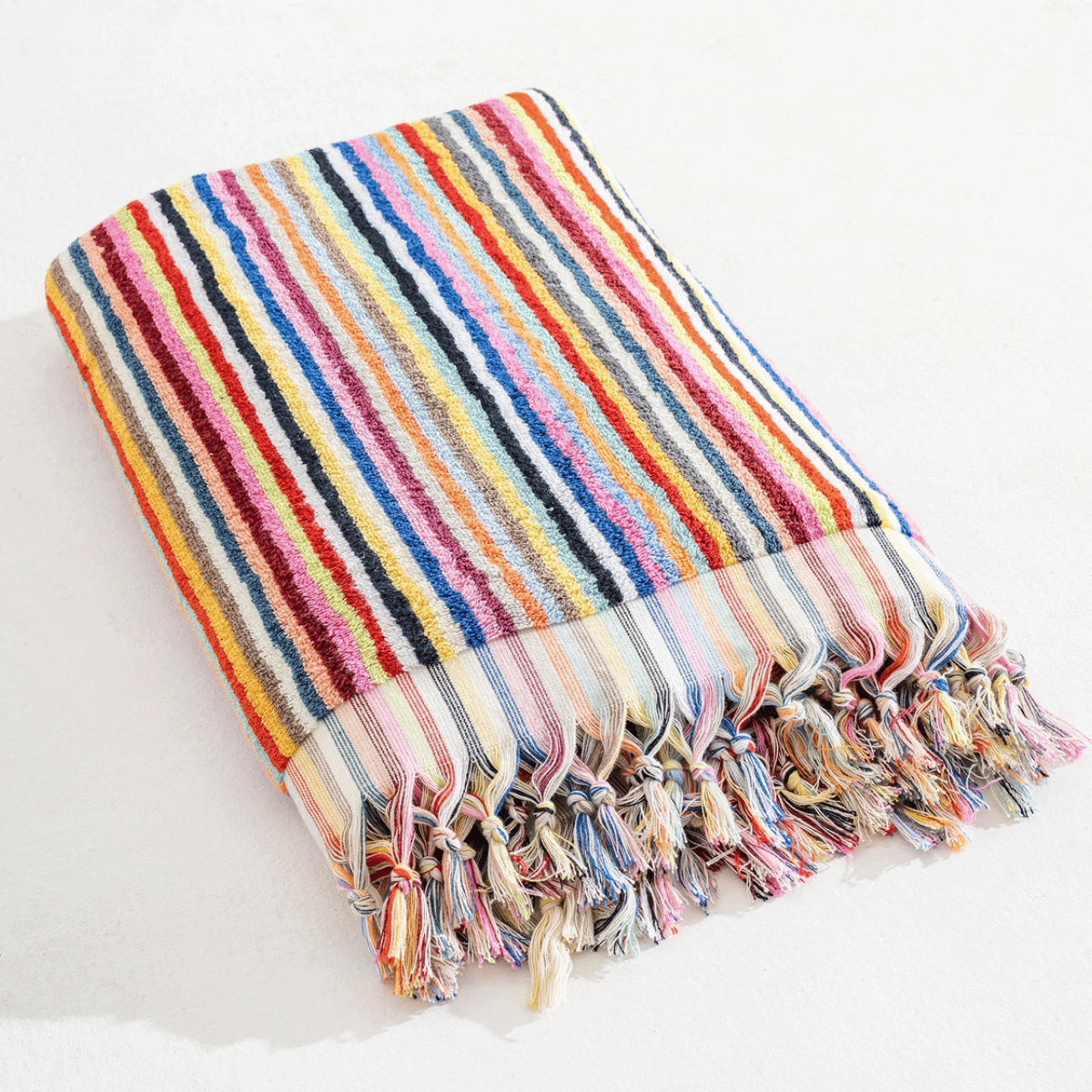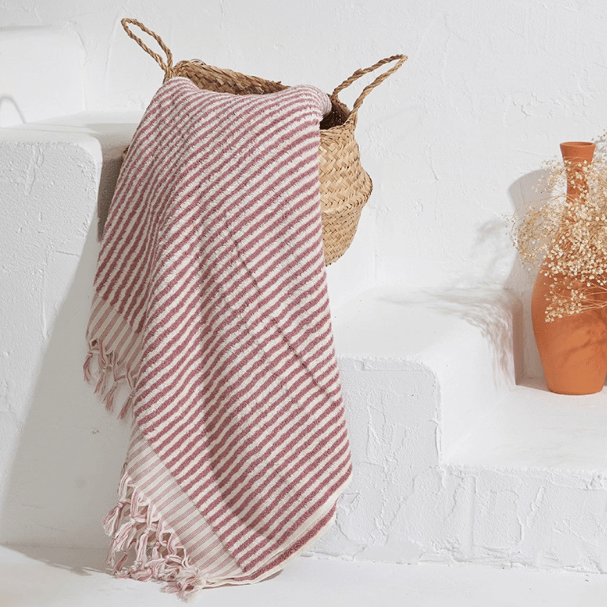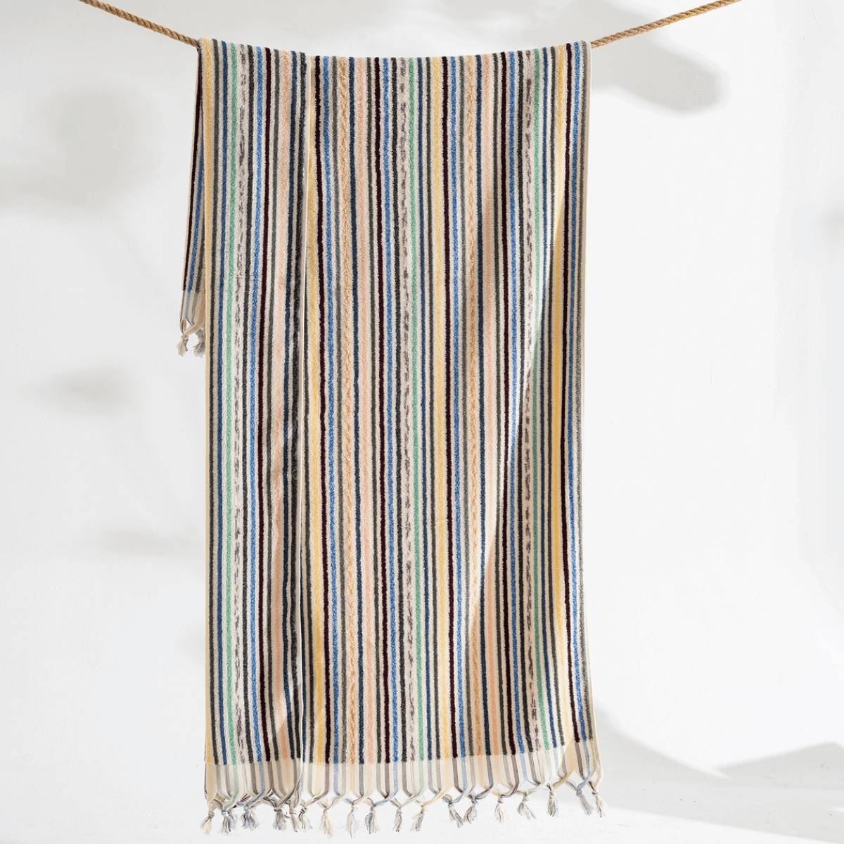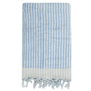 Frottékvaliteten gör handduken extra slitstark och superabsorberande, samtidigt som den förblir elegant och tidlös med sina klassiska randiga mönster. Varje handduk är noggrant handvävd för att kombinera traditionellt hantverk med modern stil.