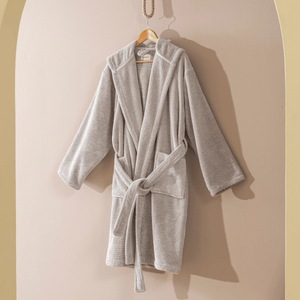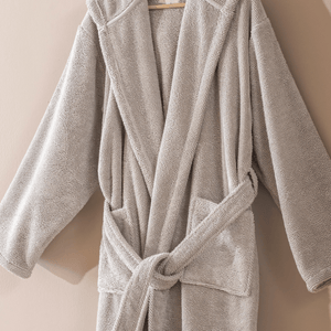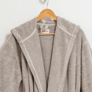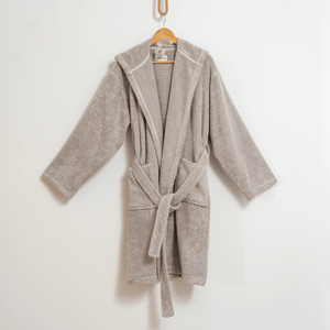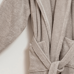 Upplev lyxen av vår morgonrock i premiumbomull - perfekt för lugna morgnar, avkopplande kvällar eller avkopplande spastunder hemma. Denna unisex-badrock i mjuk, förtvättad bomull med en vacker Pebble Terry-struktur är både fluffig och lätt. Den beige färgen och den rustika designen skapar en elegant och tidlös känsla som passar alla stilar.