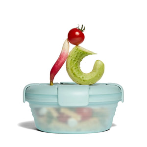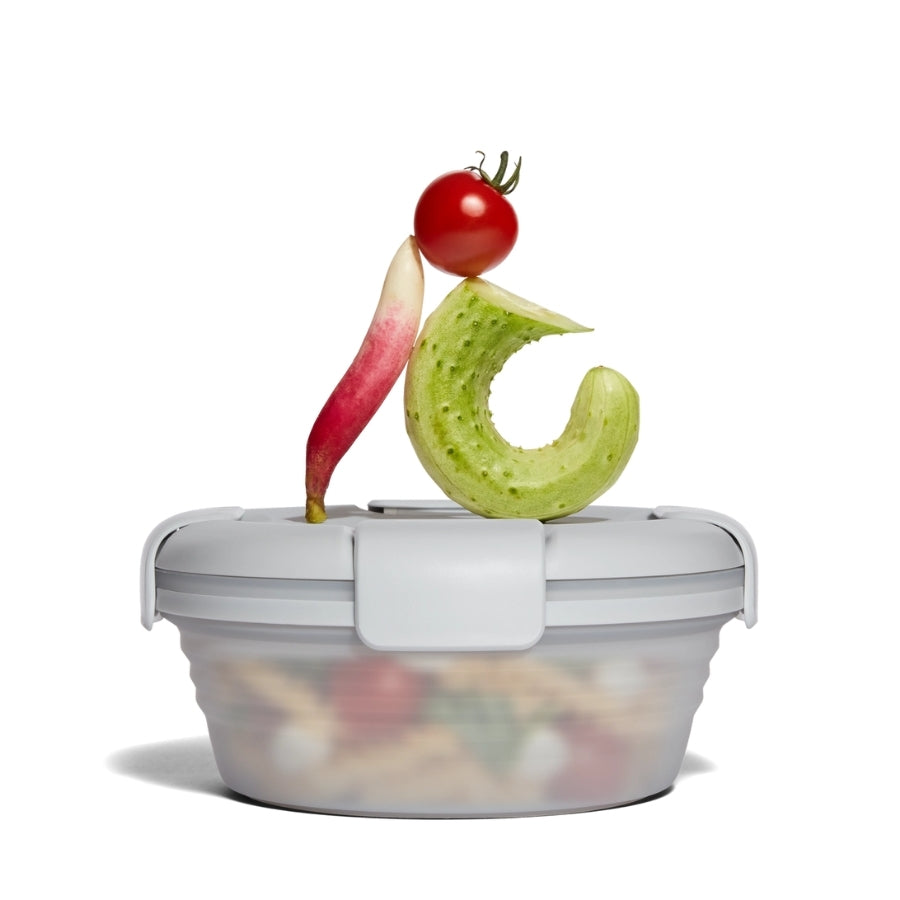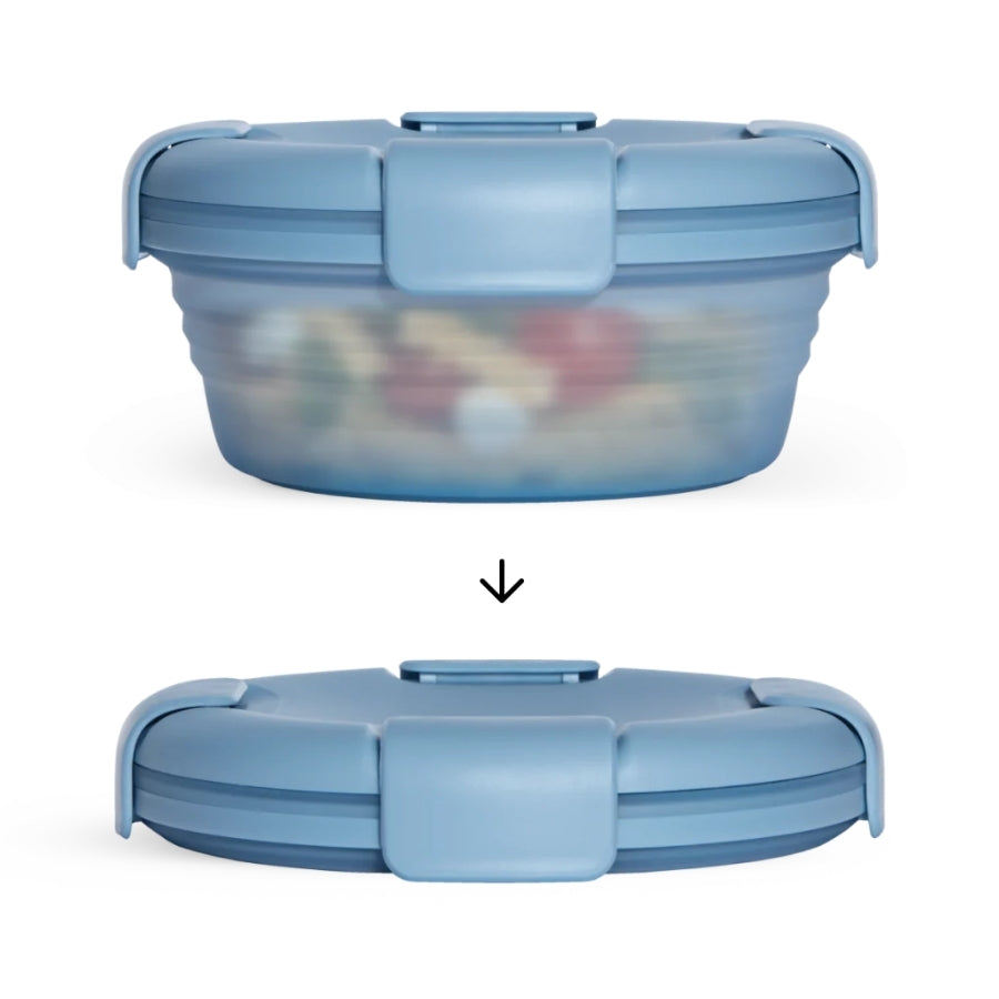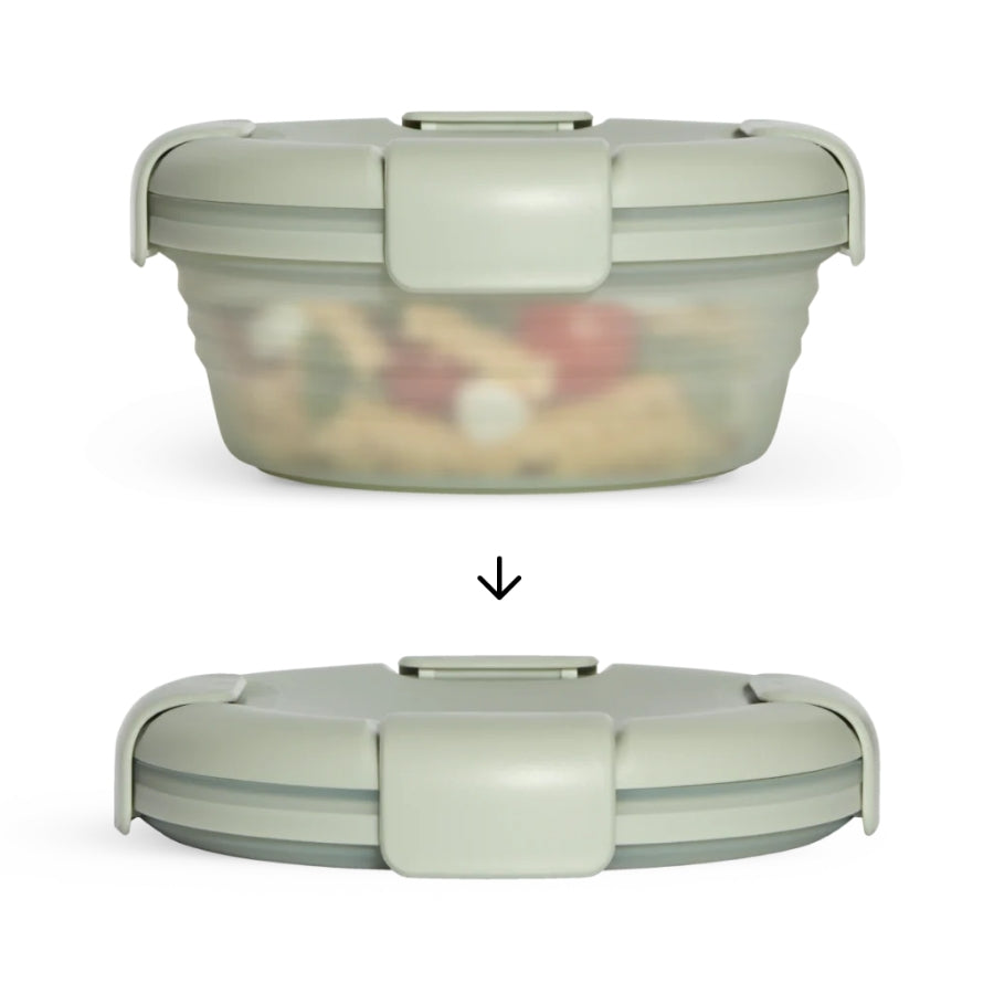 Stojo hopfällbar matlåda rymmer lite mer än 1 liter och kan enkelt fällas när den inte används.