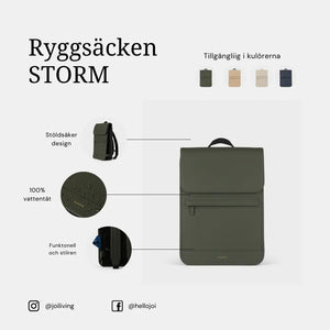 Storm ryggsäck är din ultimata följeslagare som skyddar dina ägodelar i alla väder. Den oslagbara ryggsäcken för alla.Är du trött på att oroa dig för dina saker i regn och rusk? Storm är den vattentäta väskan som skyddar din laptop, böcker och allt annat du behöver för din vardag, student- och arbetsliv. Med sin smarta design och många praktiska funktioner är Storm den perfekta följeslagaren för pendlare, studenter och resenärer.