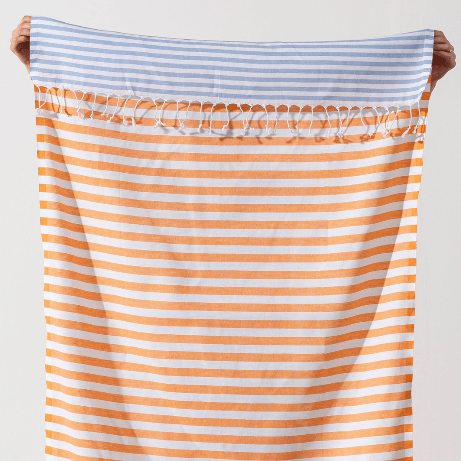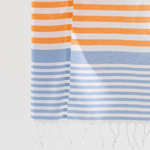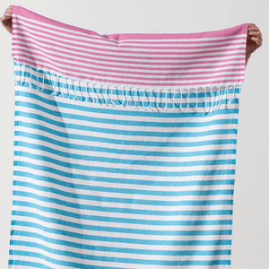 Letar du efter en strandhandduk som kombinerar stil, funktion och komfort? Då har du hittat rätt! Vår färgglada randiga strandhandduk är gjord av 100 % premium turkisk bomull, vilket gör den både mjuk och snabbtorkande. Den klassiska peshtemaldesignen gör handduken sandavvisande och superlätt att bära – perfekt för stranden, bastun, gymmet eller som en smart resehandduk.